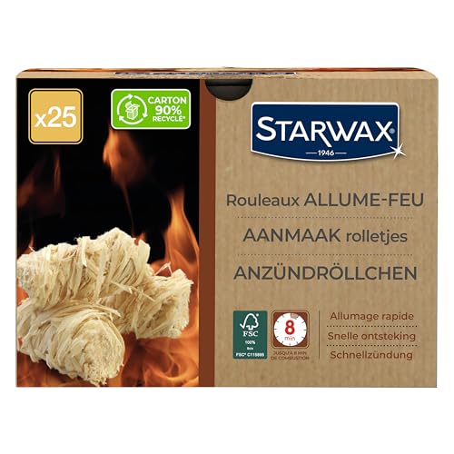 STARWAX - Rullo accendifuoco - Accensione rapida, pulita e inodore - Non altera il sapore degli alimenti - Fino a 8 minuti di combustione - FSC® - BBQ e caminetto - Set da 25