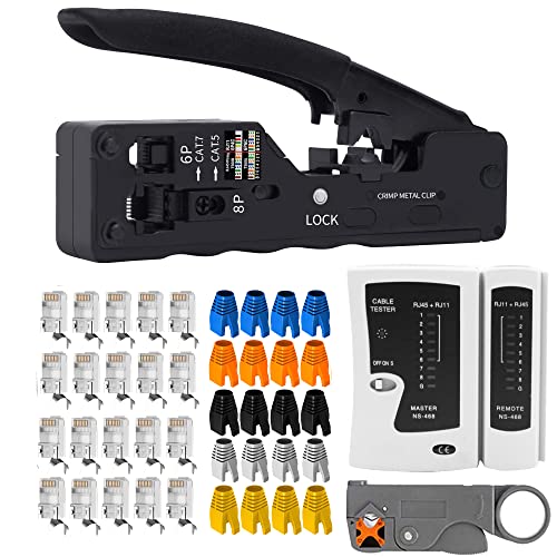 MAYLINE RJ45 pinza crimpatrice strumento di rete professionale per prese di cavi Ethernet Cat7 Cat6a Cat6 Cat5 RJ11, manutenzione tester di LAN di utili(Blu) Report This
