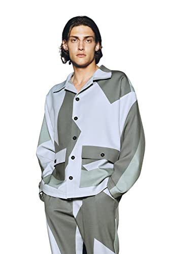 Trendyol Giacca Regolare Collo della Camicia A Motivo Geometrico Cappotto, Multicolore, XS Uomo