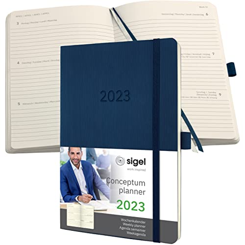 SIGEL C2332 Agenda settimanale Conceptum 2023, circa A5, blu scuro, softcover, 2 pagine = 1 settimana, 192 S
