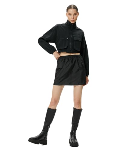 Koton Zip Parachute Jacket Stand Up Neck Double Flap Pocket Detail Blouse, Nero, 46 Donna