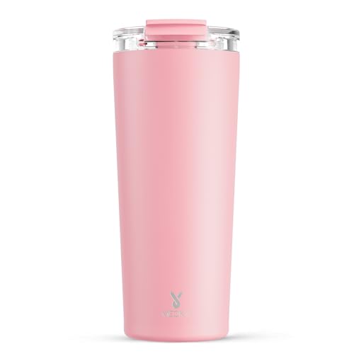 Meoky Tazza da caffè da viaggio da 680,4 g, con coperchio a prova di perdite, in acciaio inox, mantiene caldo per 8 ore o freddo per 24 ore, adatta al portabicchieri dell'auto (blush) Report This