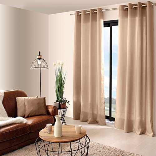 ED ENJOY HOME Tenda Decorativa con Occhielli argentati, 140 x 240 cm, Beige Naturale, 100% Poliestere, Satinato, Collezione Basic