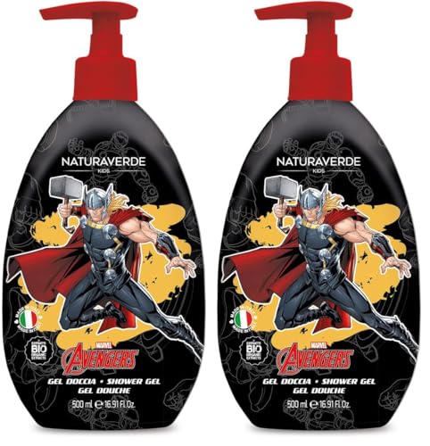 Naturaverde | Kids - Marvel Avengers - Gel Doccia per Bambini Thor, Prodotti per Igiene Bambini, con Estratti di Calendula e Camomilla BIO, 500ml (Confezione da 2)