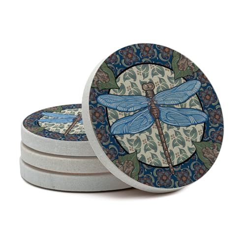 Thirstystone Sottobicchieri in arenaria naturale con libellula, confezione da 4 pezzi, ecologici, assorbenti, facili da pulire