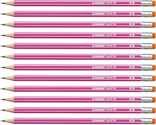 STABILO 160 - Matita in Grafite - in Rosa - con gommino - Confezione da 12 - Gradazione HB Report This