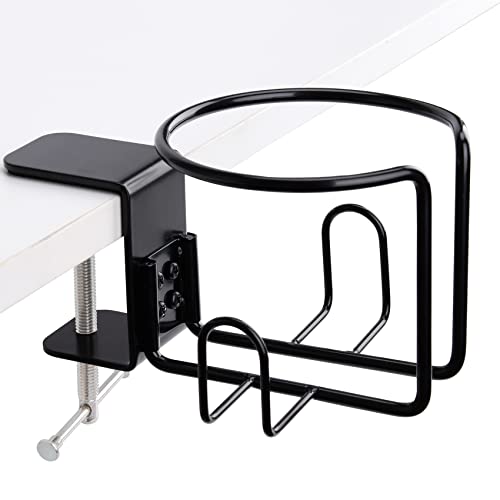 LEKUSHA Grande portabicchieri da scrivania, con clip sul tavolo, anti-fuoriuscite, per sedia da prato, montaggio orizzontale o verticale, confezione da 1, nero Report This