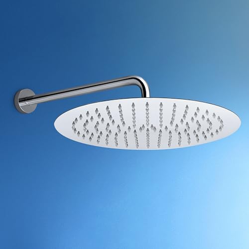 JOHO Soffione Doccia con Braccio a Parete-Soffione Doccia a Pioggia in Acciaio Inox -Docce Fisse con Getti In Silicone Anticalcare - Rotondo D30 cm- Braccio 40 cm, Cromo Report This