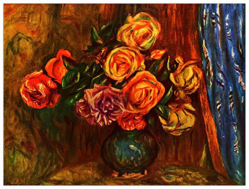 ArtPlaza TW92803 Renoir Pierre-Auguste Still life roses before a blue curtain Decorative Panel, Wood MDF, Multicolour, 80x60 Cm Report This