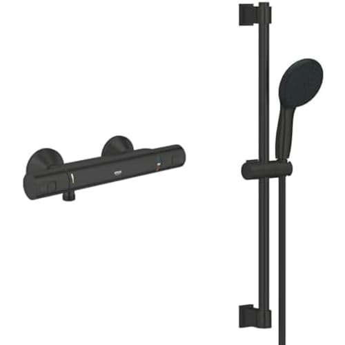 GROHE Precision Start Miscelatore termostatico per doccia con set doccia Vitalio Start 110 (pulsante di sicurezza a 38°C, doccetta tonda, 2 getti, flessibile da 1,75 m, asta da 60 cm), nero opaco Report This