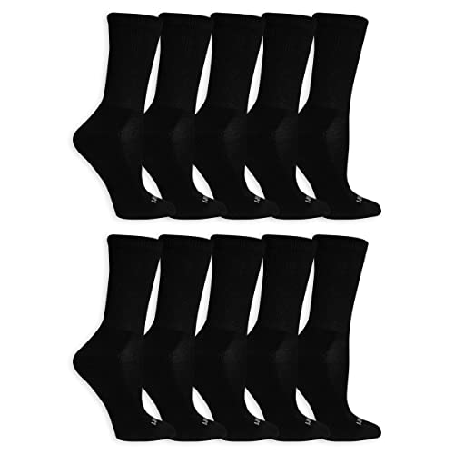 Fruit of the Loom Womens Everyday Soft Cushioned Crew Socks 10 Pair, Black, Shoe Size: 4-10