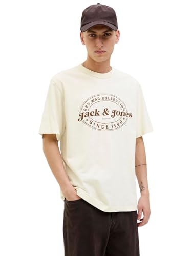 JACK & JONES Jjedover Print Tee SS Crew Neck, Bianco Antico, XS