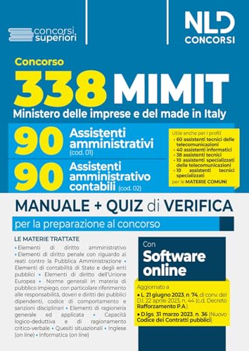 Concorso 338 posti MIMIT. Per i profili: 90 assistenti amministrativi (cod. 01); 90 assistenti amministrativi-contabili (cod. 02). Manuale + Quiz di verifica. Con Contenuto digitale per accesso on...