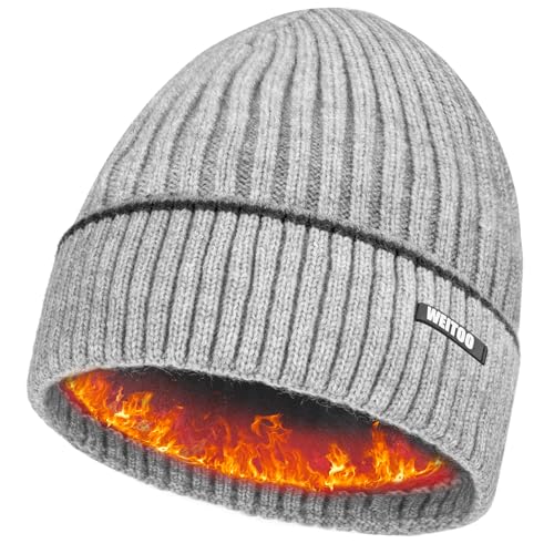 WEITOO Berretto da uomo, elastico morbido con risvolto in maglia con fodera spessa e calda, cappello invernale unisex, regalo per uomini e donne, Grigio - 2, Etichettalia unica Report This