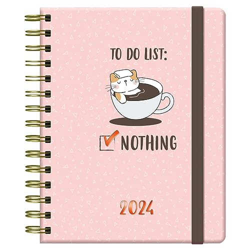 Dohe - Agenda 2024 - Vista settimanale - Dimensioni: 15 x 21 cm (A5) - 176 pagine - Rilegatura a spirale - Copertina rigida - Modello Random Cat