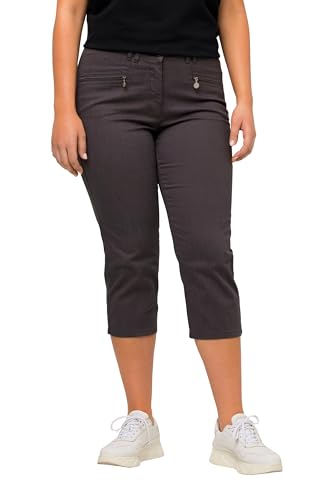 Ulla Popken Basic Mony Pantaloni al Polpaccio Facelift, Grigio Scuro, 36W / 32L Donna