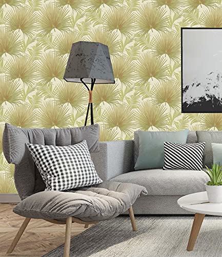 BUVU Carta da parati in vinile, 53 x 1000 cm, colore beige, bianco, con foglie floreali