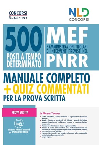 Concorso 500 MEF (Ministero dell’Economia e delle Finanze): 500 posti banditi alla Presidenza del Consiglio dei Ministri - Manuale completo + Quiz per la Prova Scritta