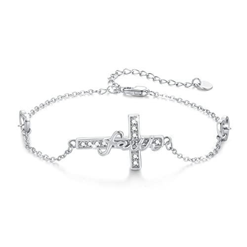 XIXLES Bracciale in argento sterling 925 con ciondolo a forma di croce e credenza per donne e uomini con catena regolabile da 7 + 2 pollici, 17.78 cm bis 22.86 cm, Argento sterling