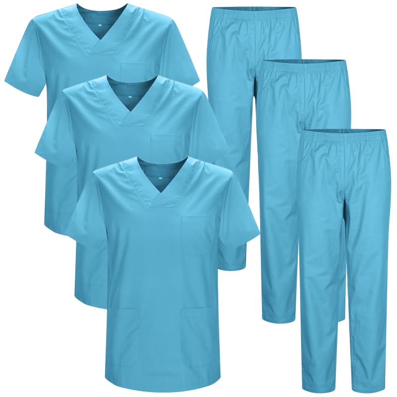 MISEMIYA Pack 3 PCS-Uniformes Sanitarios Confezione da 3 Pezzi-Uniformi Sanitari Unisex MZ-3-817-8312, Ciano, S (Pacco Adulto