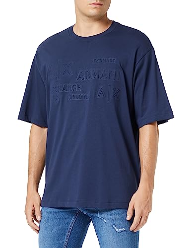 Armani Exchange Sustainable, Logo Stampato, Jersey Pesante, Maniche Corte Polo Sweater, Blu, S Uomo