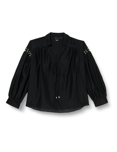 Pinko Elf Blusa Voile Seta Cotone con Piercing Camicia da Donna, Z99_Nero Limousine Report This