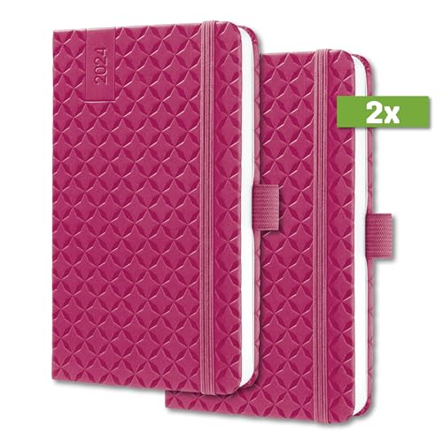 SIGEL J4104 Jolie Agenda settimanale 2024, copertina rigida, 9,5 x 15 cm, 174 pagine, rosa, 2 pezzi