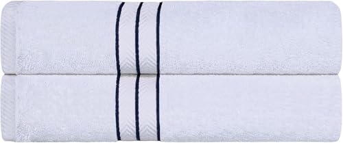 Superior Egyptian Cotton Set di 2 Asciugamani da Bagno di Lusso, 900 Grammi, Colore Bordo, 100% Cotone Pettinato a Fibra Lunga di Alta qualità, Bianco/Blu Navy, 27.9x35.6x16.5 cm