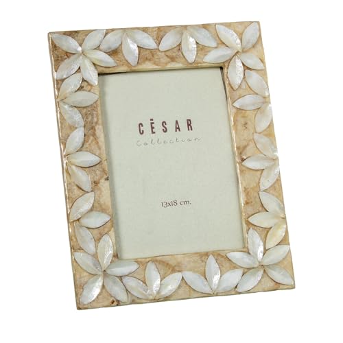 PORTAFOTOS NÁCAR 13X18CM FLORES RELIEVE NATURAL/TOSTADO_EXT.19,5X24,5X1CM
