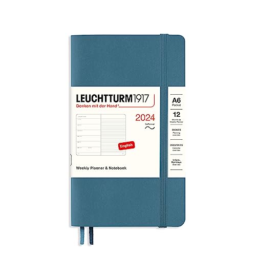 LEUCHTTURM1917 367802 Agenda settimanale e taccuino copertina morbida Pocket (A6) 2024, 12 mesi, Stone Blue, Inglese