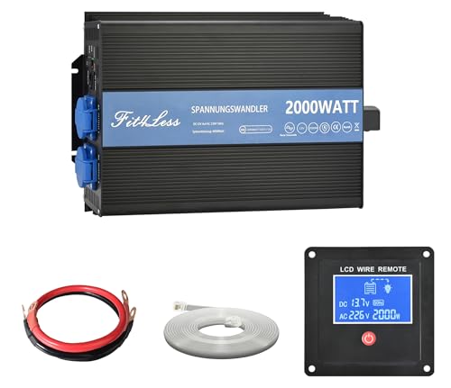 DC 12V to AC 230V 50Hz 2000W Rated Power Inverter 4000W Surge Pure Sine Wave with dual sockets, USB and LCD Display. Report This