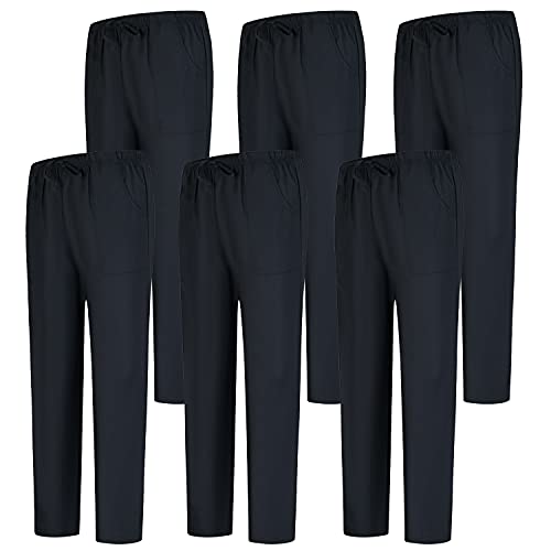 MISEMIYA - Pack 6 PCS - Pantaloni Unisex Vita Elastica Uniforme di Lavoro Clinica Ospedale Pulizia Veterinario IGIENE - X-Small, Nero 68