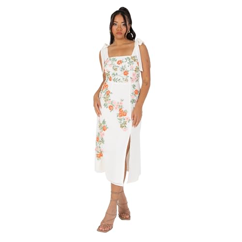 Maya Deluxe Women's Ladies Midi Dress Square Neck Sleeveless Tie Shoulder Floral Embellished Slit Split for Wedding Guest Occasion Vestito Speciali, Ecru, 60 Donna Report This