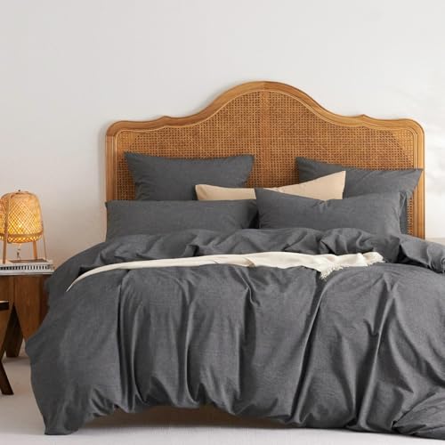 Lanqinglv Copripiumino 240 x 260 cm, in cotone, grigio scuro, tinta unita, con cerniera, certificato Oeko-TEX copripiumino con 2 federe 65 x 65 cm Report This