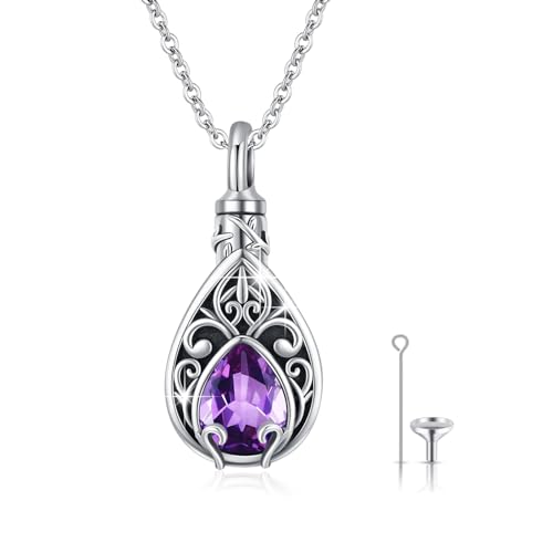 Collana con urna a forma di albero della vita, in argento Sterling, febbraio, ametista, pietra portafortuna, urna per cenere, gioielli per donne e ceneri umane, Argento sterling Report This