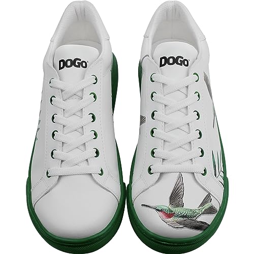DOGO Femme Cuir Vegan Blanc Baskets - Chaussures de Marche Confortables et Décontractées Faites à la Main, Soar The Sky Motif Report This
