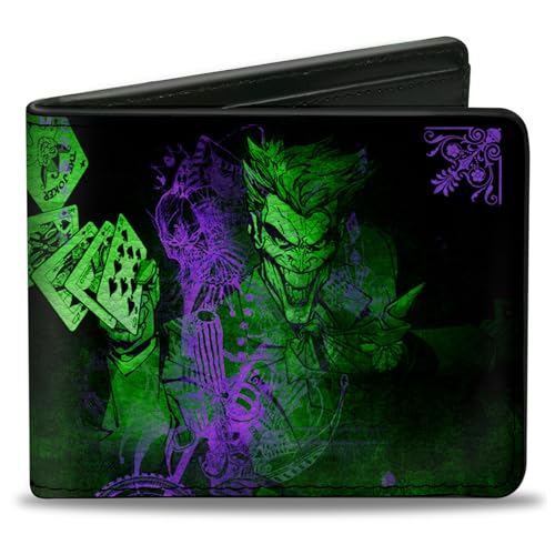 Buckle-Down Portafoglio unisex The Joker Card Flipping Poses Nero/Verde/Viola Bi-Fold, Multicolore, 4.0" x 3.5"