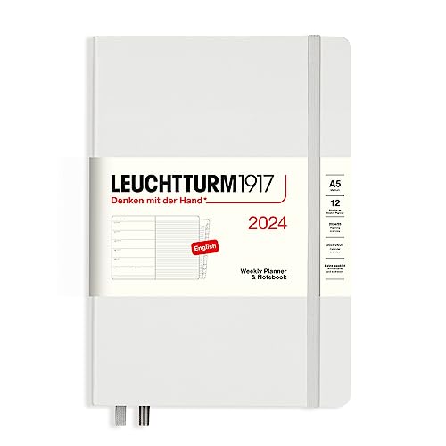 LEUCHTTURM1917 367701 Agenda settimanale e taccuino medio (A5) 2024, 12 mesi, grigio chiaro, inglese