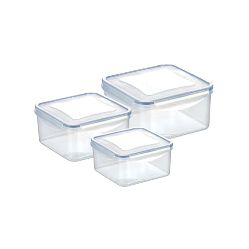 Avilia Set di 3 Contenitori Quadrati Trasparenti con Chiusura Ermetica in Silicone: Soluzione Pratica per Conservare e Trasportare Alimenti Freschi e Protetti