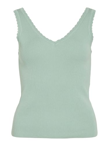 Vila Neck S/L Rib Knit Top Viesra-Maglia con Scollo a V, S/L, Verde Silt, L Donna
