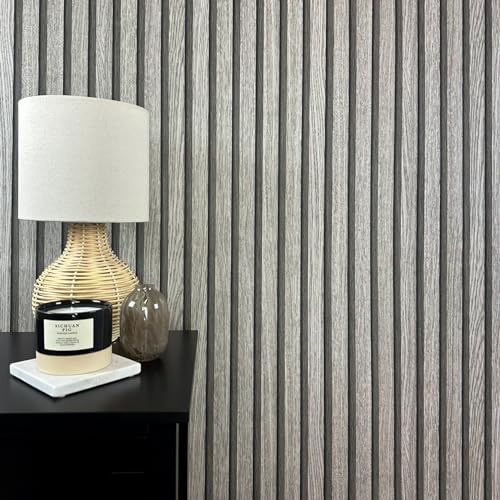 WALLCOVER Carta da parati effetto legno 3D, pannelli acustici da parete, stile scandinavo naturale e moderno, 10,05 m x 0,53 m, grigio/grigio chiaro, prodotto in Germania Report This